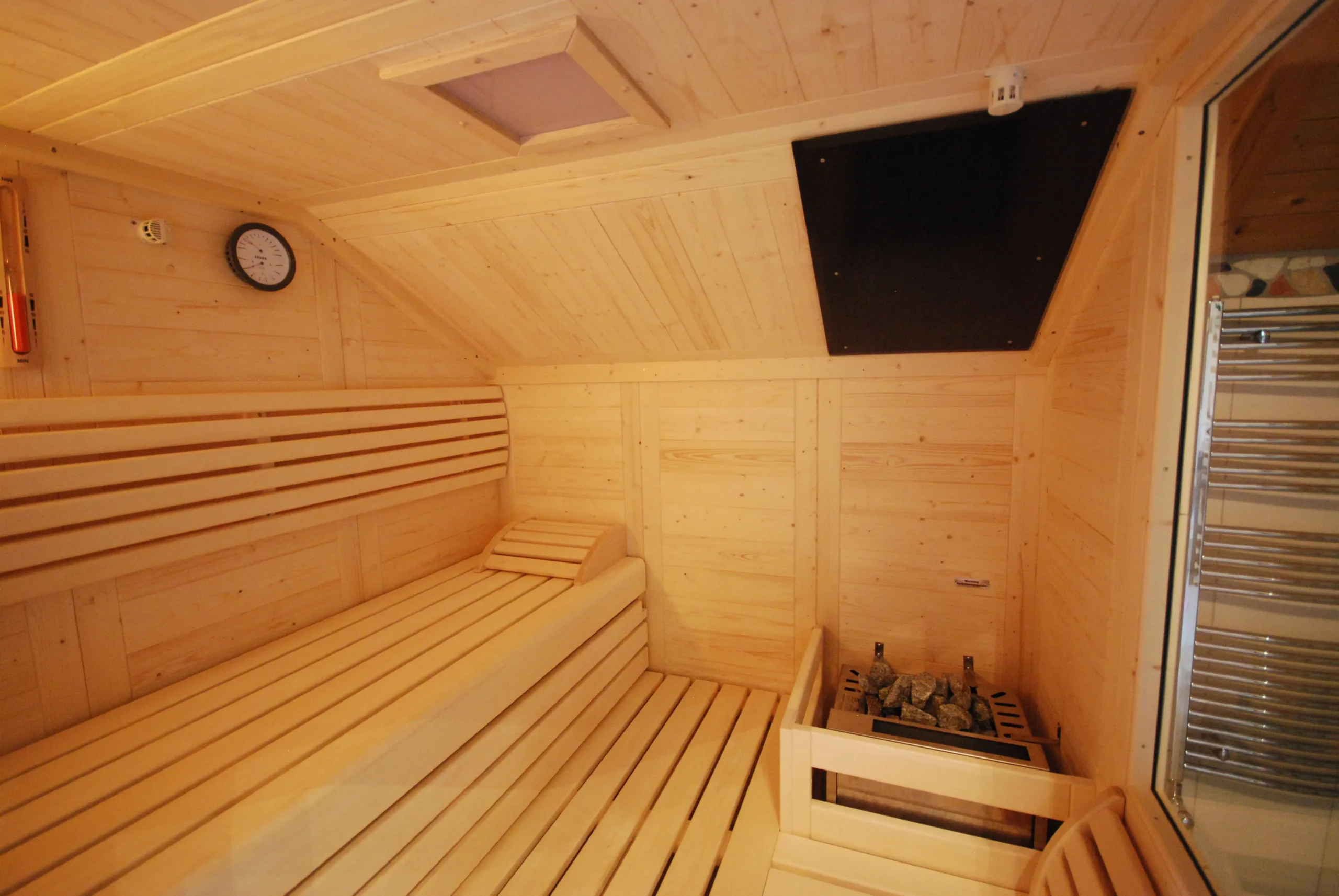 Apropos Platz: Jede Massivholzsauna von uns wird nach individuellen Kundenwünschen einzeln gefertigt. Alle räumlichen Gegebenheiten wie z.B. Dachschrägen können somit berücksichtigt werden.